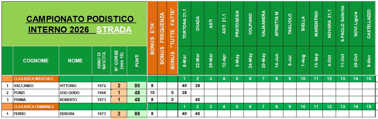 CAMPIONATO PODISTICO INTERNO 2026